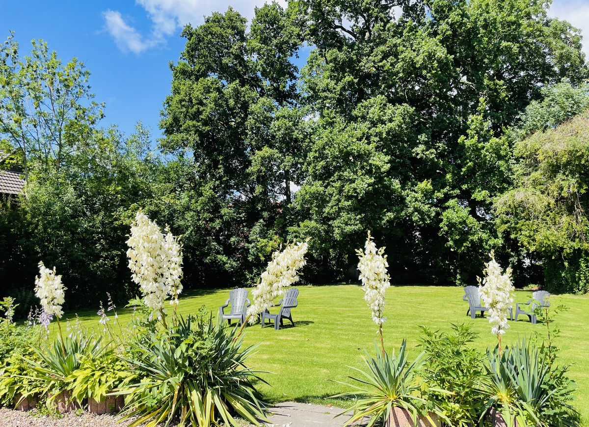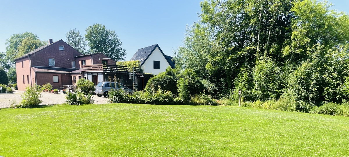 Terrassenplatz mit Gartenmöbeln, Pavillon, Grillplatz, Kinderschaukel, großer Garten, Parkplatz